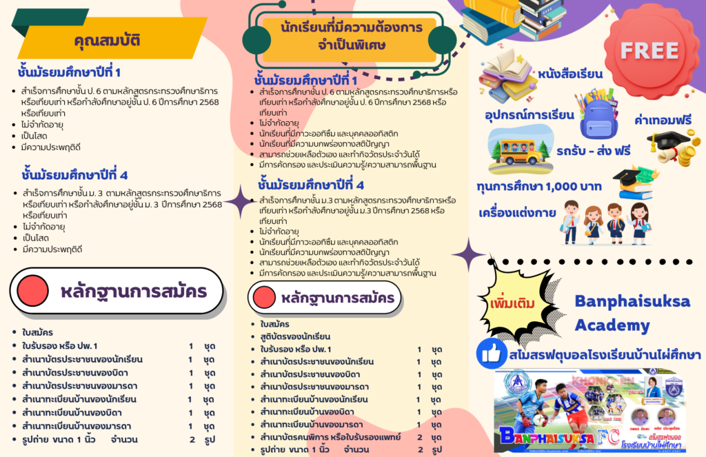 เปิดรับสมัครนักเรียน ปีการศึกษา 2569